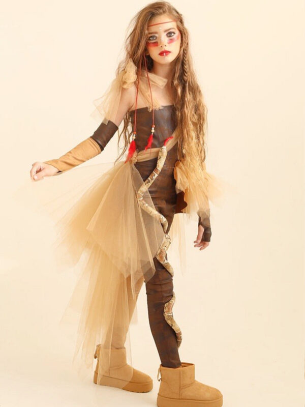 תחפושת דלמטית: שמלת קטיפה טוטו א-סימטרית בשילוב פרוות חברבורות וזנב פרווה תפור לגב השמלה