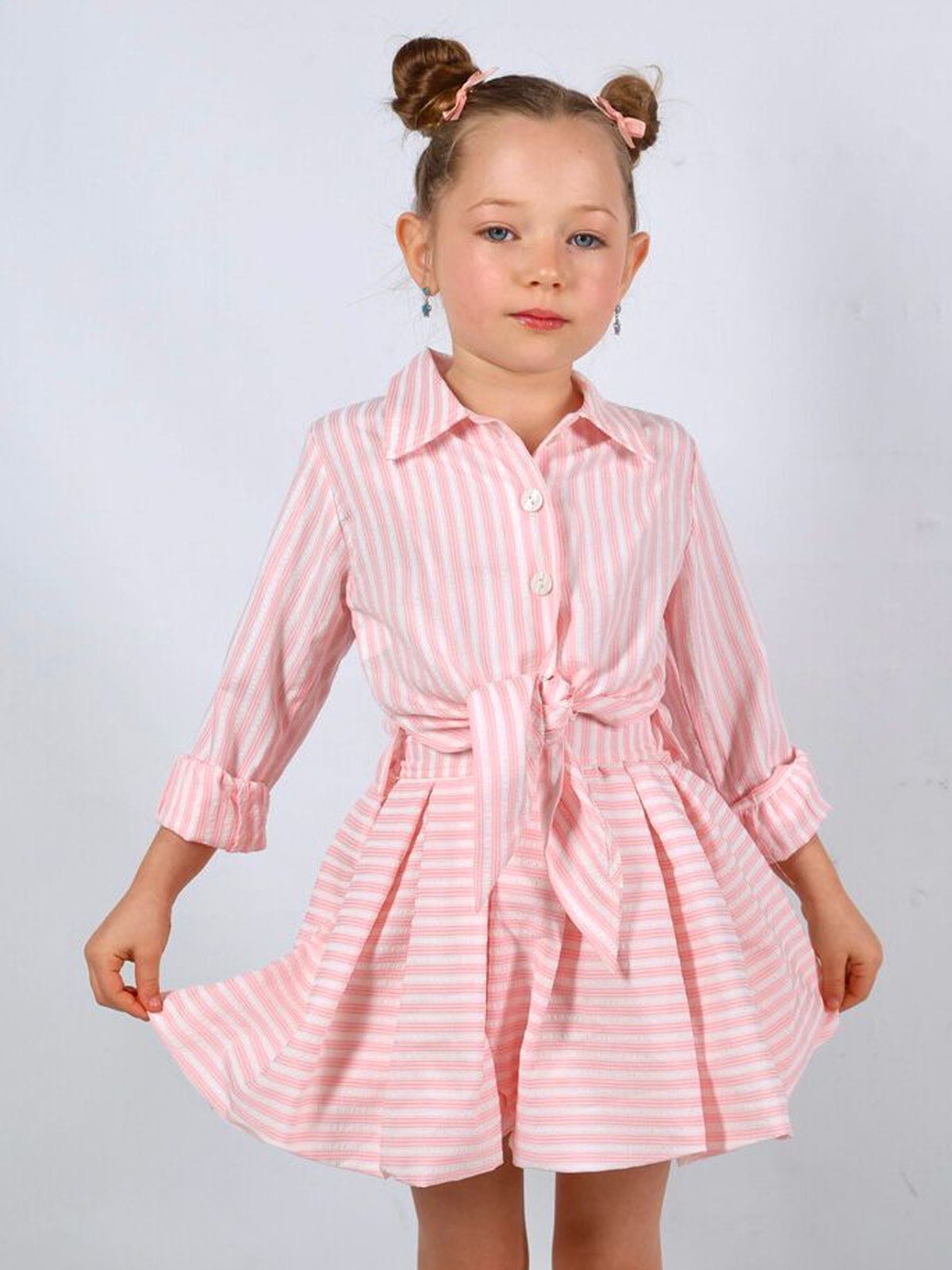 סט חצאית קשירה פסים לאורך עם חצאית קפלים בלון פסים לרוחב, סט היסטרי ושיקי