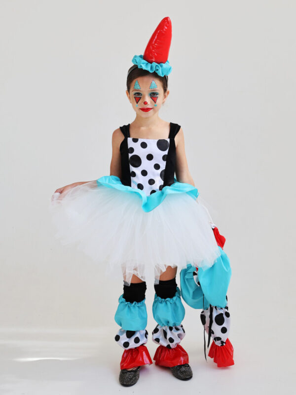 תחפושת קומיקס לילדות, תחפושת מקורית שיורדת לפרטים הקטנים וכוללת את כל האביזרים: שמלת טוטו א- סימטרית, חותלות ריז’, כפפת ריז’, וקשת פפיון תפוחה.
