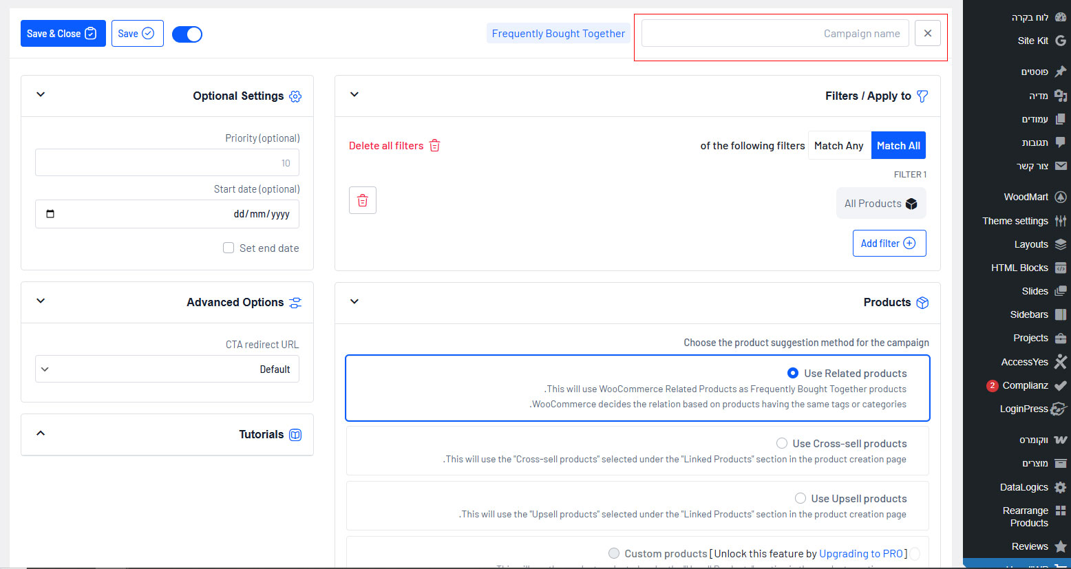 2. לבחור Frequently Bought Together