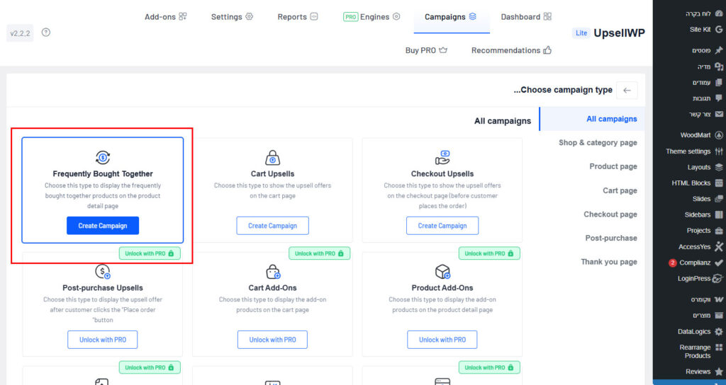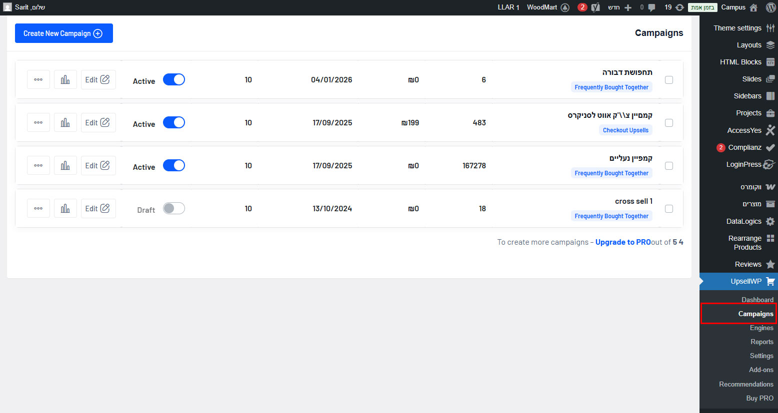 - לפתוח קמפיין חדש צד שמאל למעלה