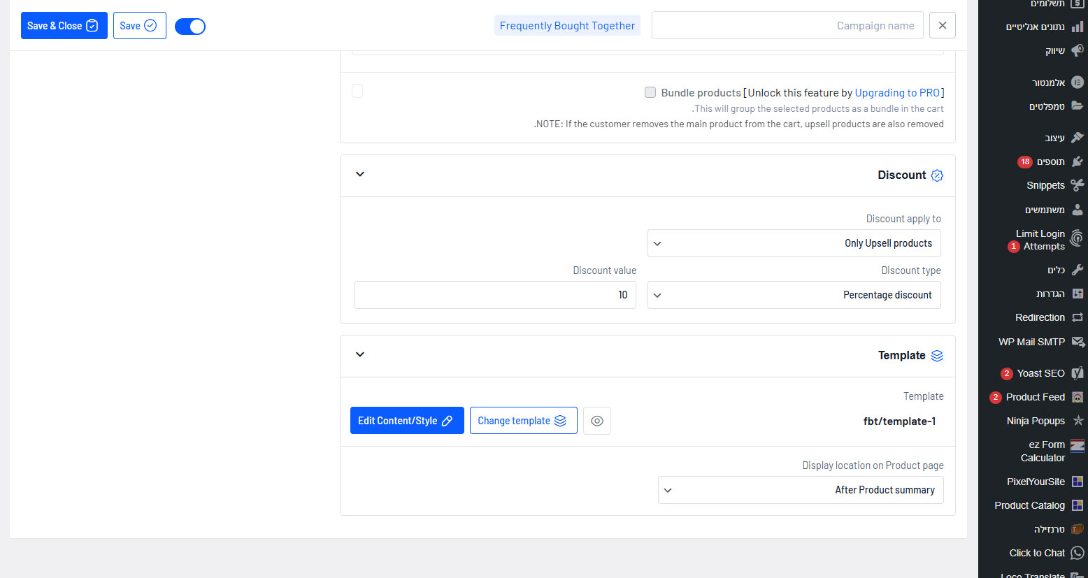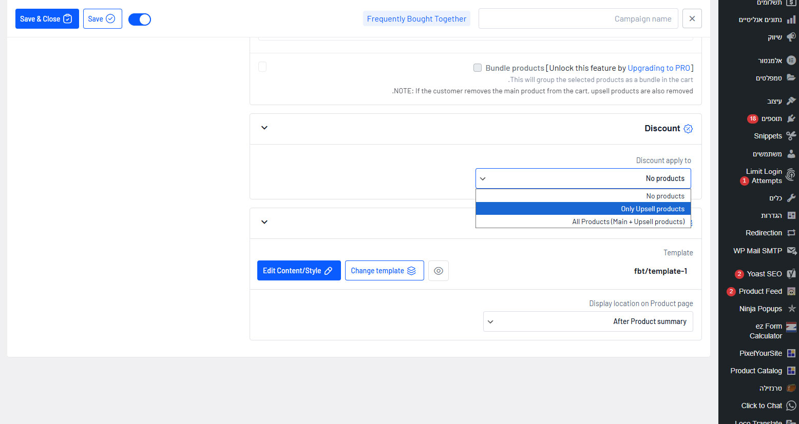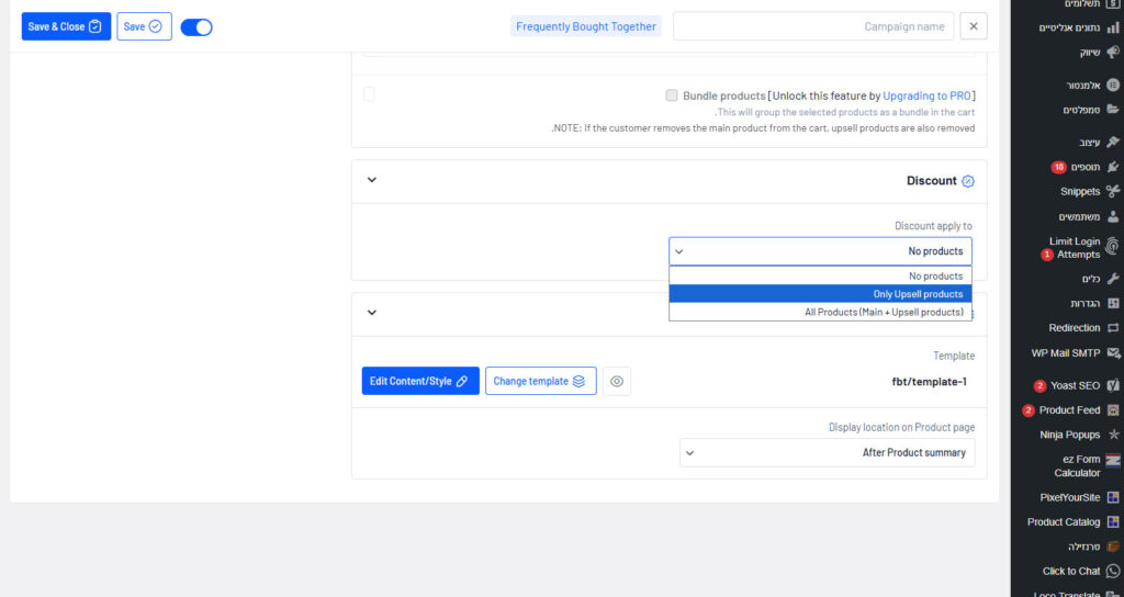9. לגלול למטה ולבחור אם לתת הנחה לUpsale הנוכחי
