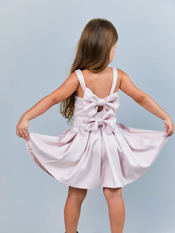 שמלה מסתובבת שהופכת כל ילדה לנסיכה בגזרת מחוך עם שרוולים תפוחים ומדויקים מבד מונקו גמיש ורך