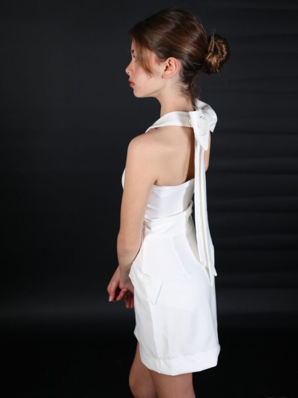 שמלה מסתובבת עם קלוש היסטרי, פתח בגב מושלם עם קשירה, דייטיילז בשרוולים.